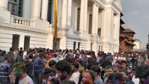 काठमाडौं । ऐतिहासिक बसन्तपुर दरबार क्षेत्रमा आज फागु पूर्णिमा (होली) पर्व भव्य रूपमा मनाइएको छ। बिहानैदेखि सर्वसाधारण, युवा तथा पर्यटकहरूको उल्लेख्य सहभागितामा दरबार क्षेत्र र आसपासका गल्लीहरू रङ्गीन बने। एक–अर्कालाई अबिर र रङ लगाउँदै, सांगीतिक प्रस्तुति र नृत्यसहित उत्सवमय वातावरण सिर्जना गरिएको थियो।