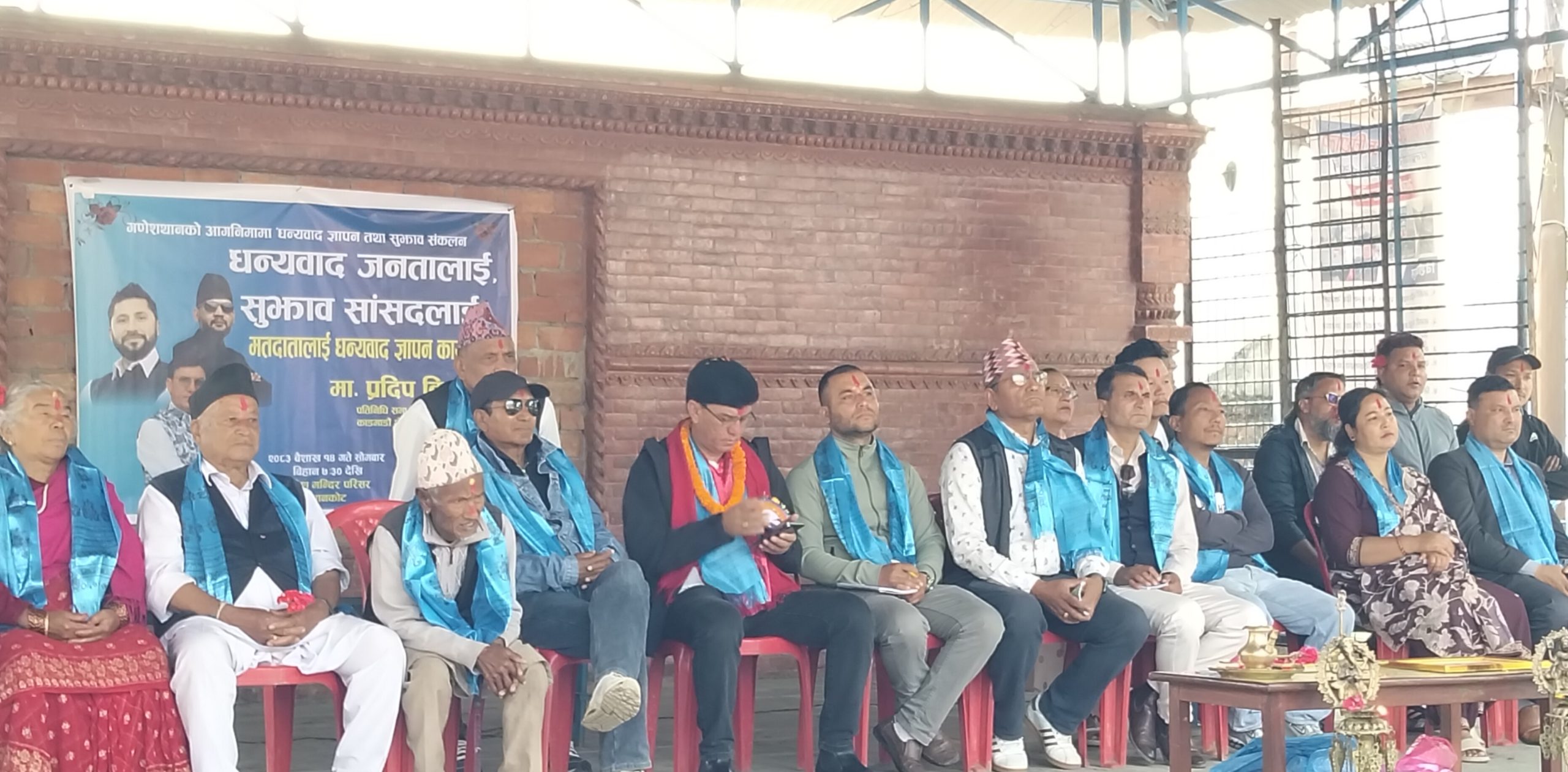 काठमाडौँ । काठमाडौँ महानगरपालिका–चन्द्रागिरी वडा नं. ३ स्थित गणेशथान मन्दिरमा आज आयोजित कार्यक्रममा माननीय सांसद प्रदिप बिष्टले स्थानीय जनतालाई धन्यवाद ज्ञापन गर्नुका साथै उनीहरूका सुझावहरू संकलन गरेका छन्।